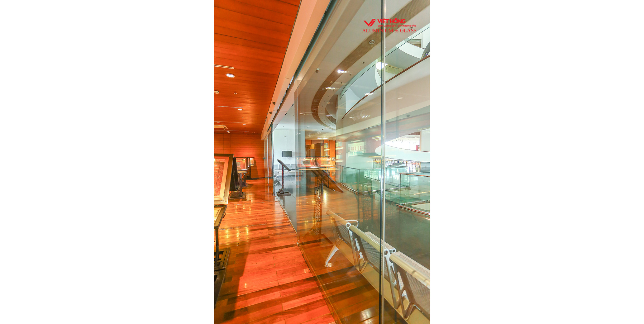 Viet Hong installs BESAM Unislide automatic door, Clear 12mm tempered glass, 4mm Alcorest aluminium panels for this iconic project.
