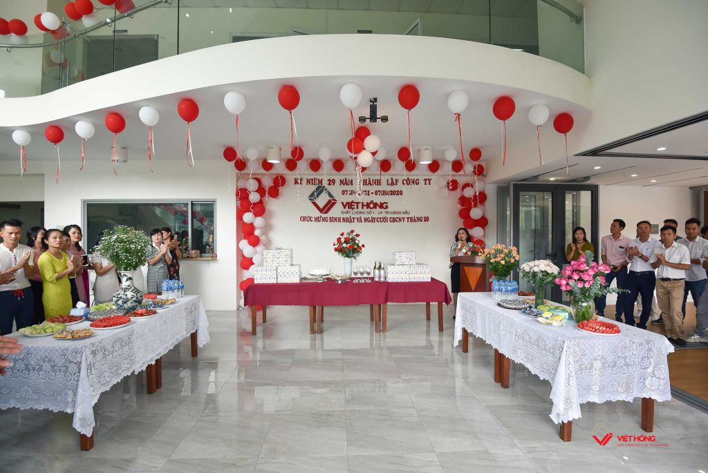 07/10/1991 – 07/10/2020 – 29 năm một chặng đường hình thành và phát triển của Công ty CPTM Việt Hồng với những nỗ lực và cố gắng không ngừng nghỉ của Ban lãnh đạo cũng như toàn thể CBCNV. Lễ kỷ niệm 29 năm ngày thành lập đầy hào hứng nhưng cũng vô cùng ấm cúng với toàn thể gia đình Việt Hồng được tổ chức tại Nhà máy Việt Hồng – KCN Tân Quang, Văn Lâm, Hưng Yên.