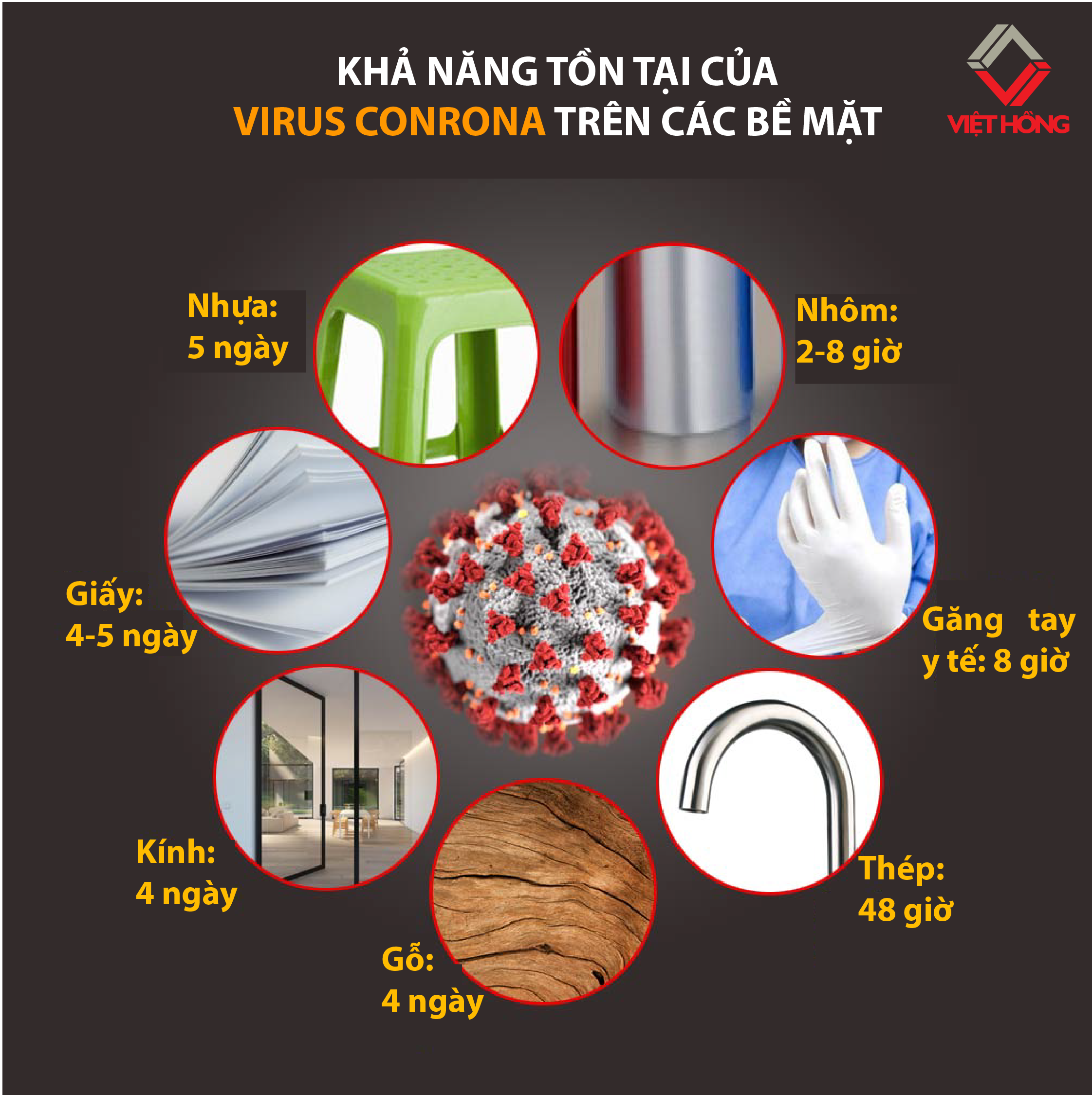 Thời gian tồn tại của virus corona trên các bề mặt
